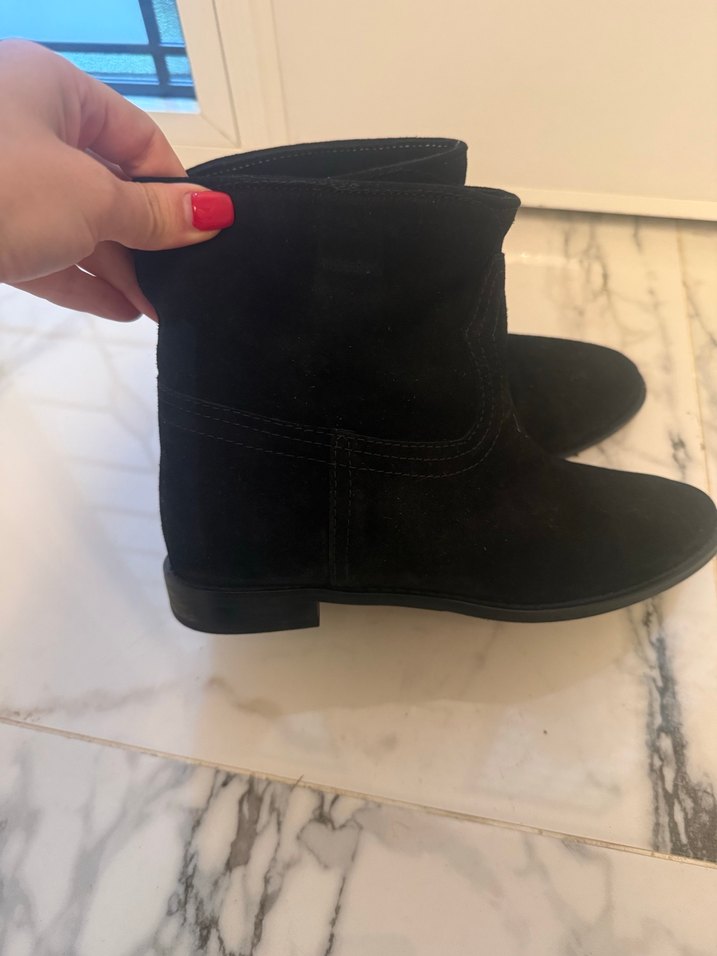 Siyah süet kadın botlar, blok topuk detaylıdır. Günlük sokak modasına uygun, trend rahat stil için idealdir. Sadece bir kez giyildi altındanda anlaşıldığı gibi
