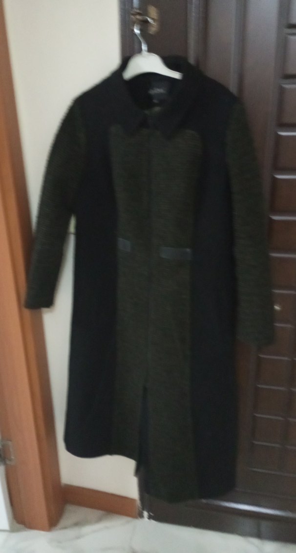 Kadınlar için siyah süet uzun kaban, kesik yakalı ve kürklü detaylara sahip. Uzun kollu, regular fit, ofis için uygun goth tarzı.