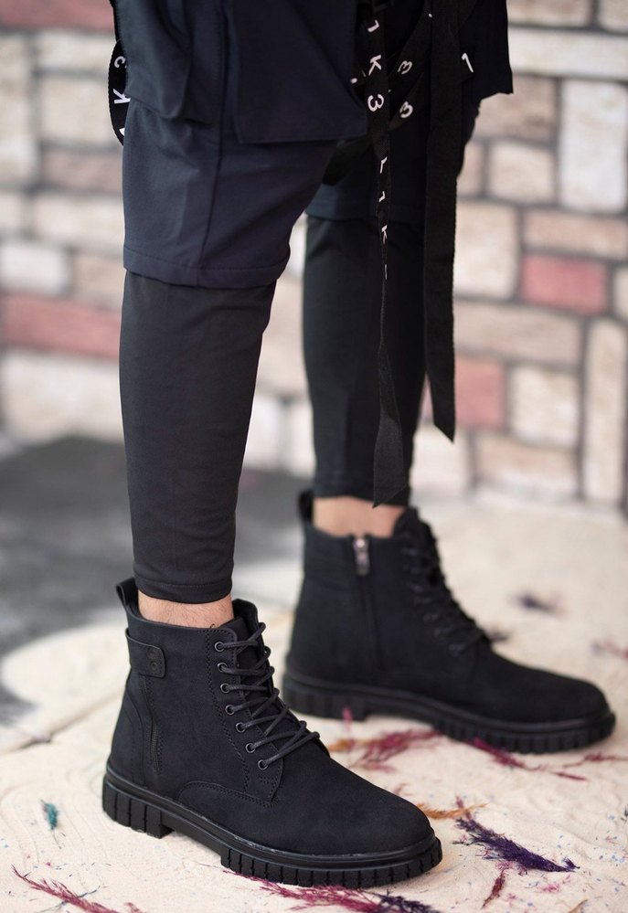 Siyah Süet Kamuflaj Desenli Bağcıklı Erkek Bot