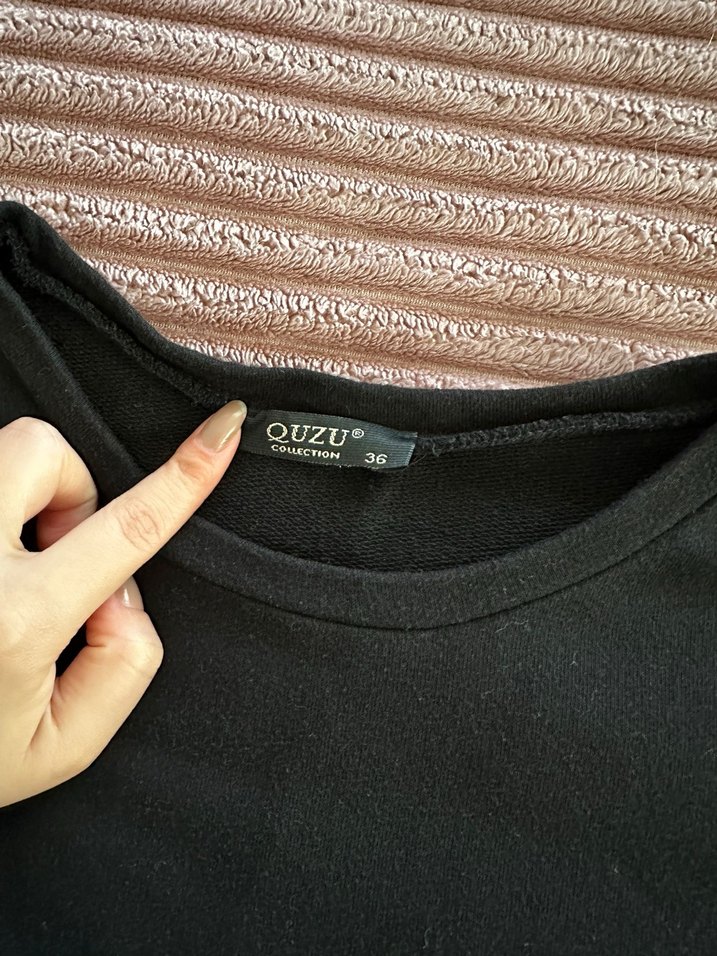 Siyah süet , uzun kollu ve yuvarlak yaka, parlak yüzey ve midi boyda, günlük kullanıma uygun. Marka: QUZU.
