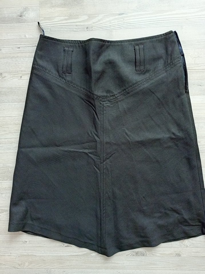 Kemerli bel ve düz yüzeyli, siyah süet midi mini etek. Minimalist goth tarzında, dış mekan kullanımına uygun dar kesim.