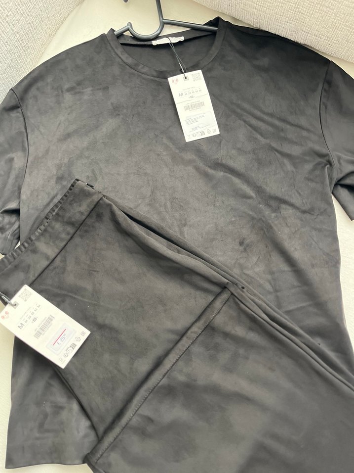 Siyah süet Kısa Kollu Takım