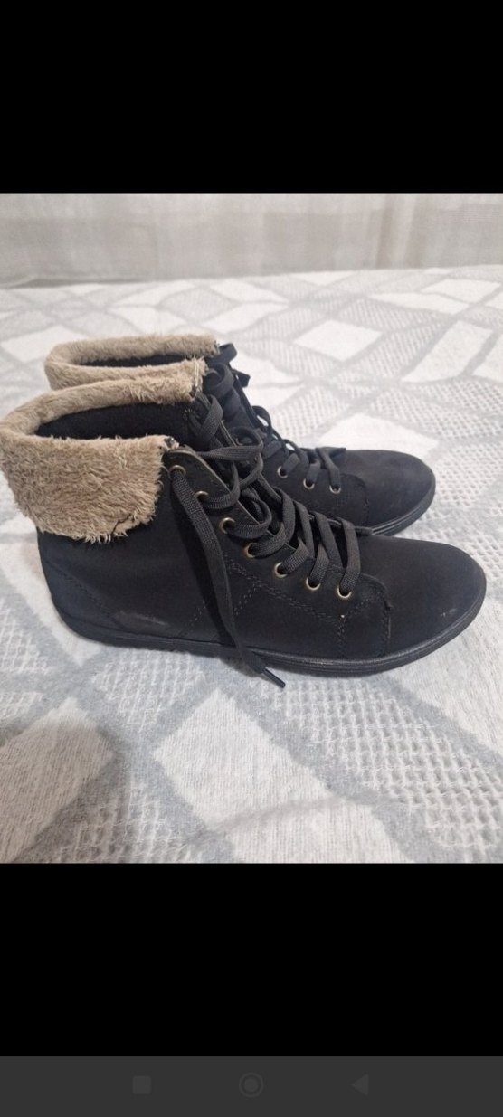 Siyah süet malzemeden yapılmış, dolgu topuklu ve kürk detaylı günlük sokak stili botlar. Bağcıklı ön kısmı ve yumuşak kürk yakası vardır.