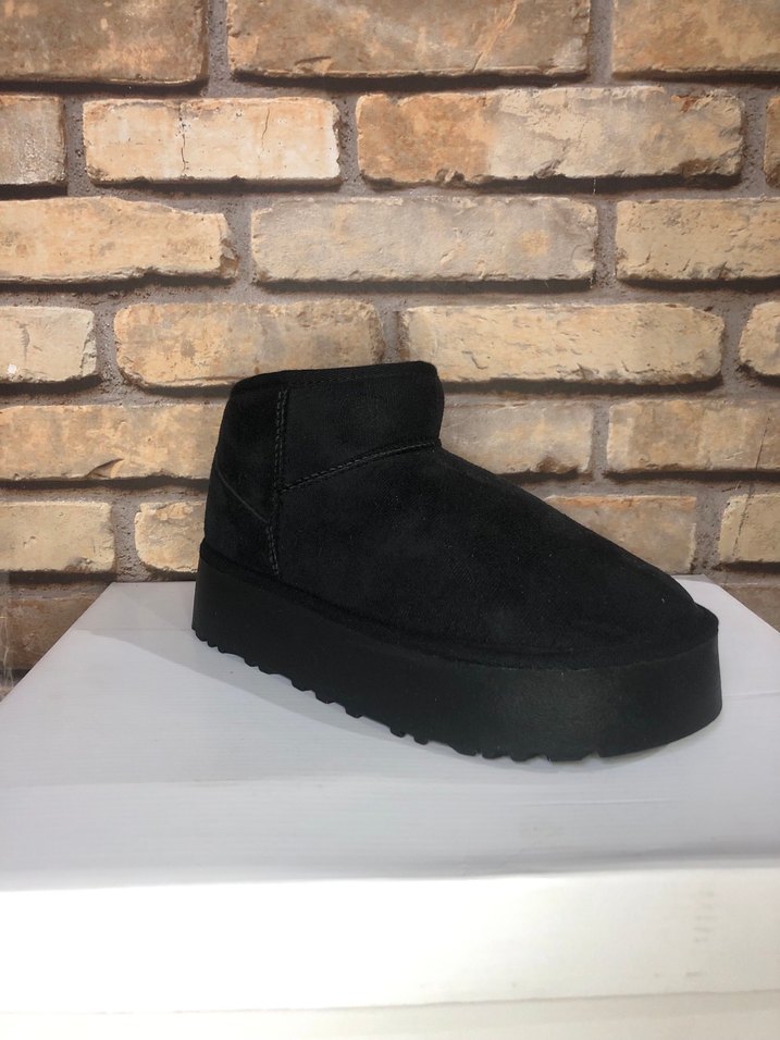 Siyah süet malzemeden yapılmış, kürk detaylı dolgu topuk kadın botları. Günlük sokak stiline uygun, rahat ve şık bir tasarım.
