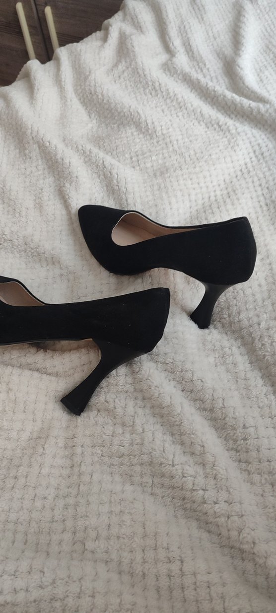 Siyah süet ve kürk detaylı ince topuklu kadın ayakkabısı, ofis için şık ve modern bir tarz sunar.