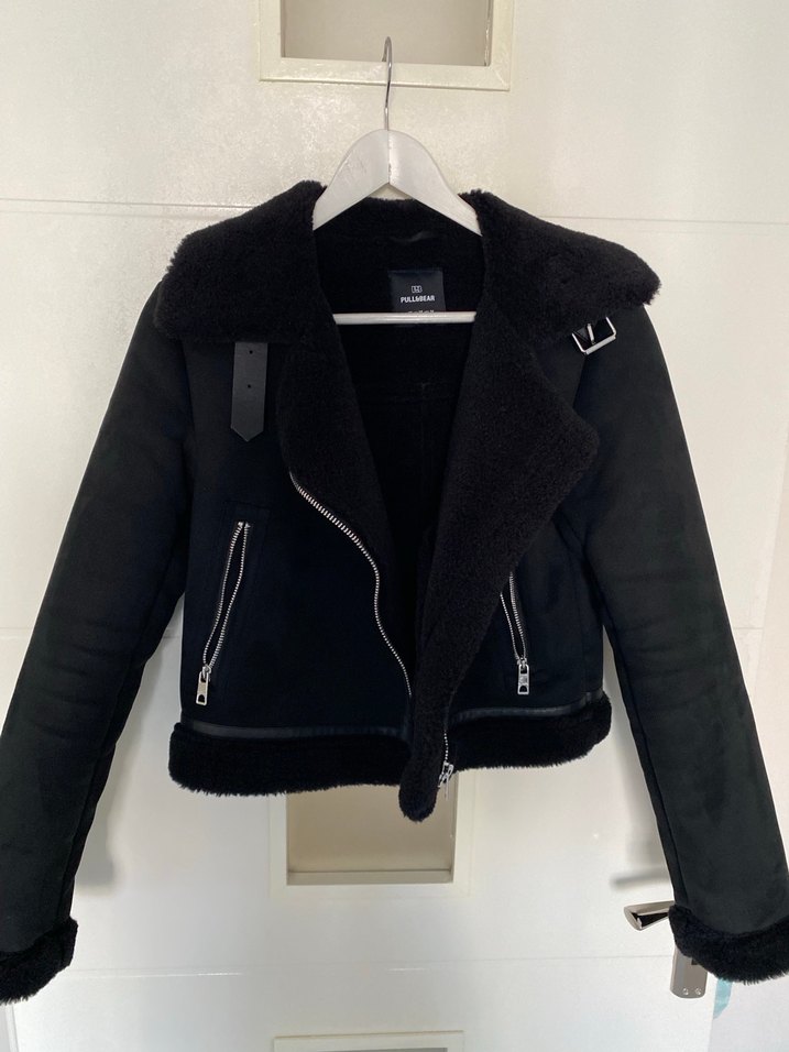 Siyah süet kumaştan, kürk detaylı, oturmalı kesime sahip, yaka kısmı kesik ve fermuarlı cepleri olan kadın ceketi max 3 kere giydim tertemizdir xs