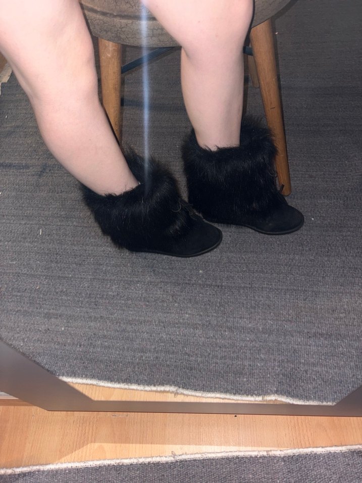 Siyah süet kadın botlar, kürk detaylı ve dolgu topuklu, rahat ve şık gotik tarzıyla günlük kullanım için uygundur.