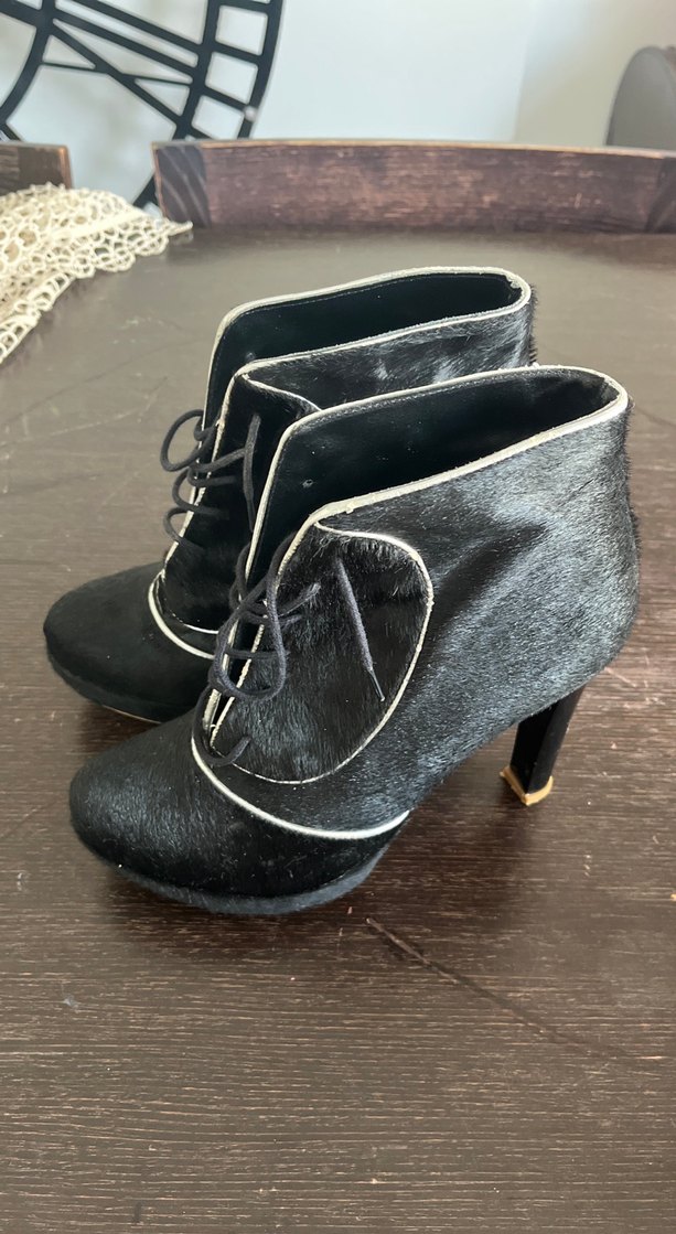 Siyah Süet Kürklü Yüksek Topuklu Zebra Desenli Bot
