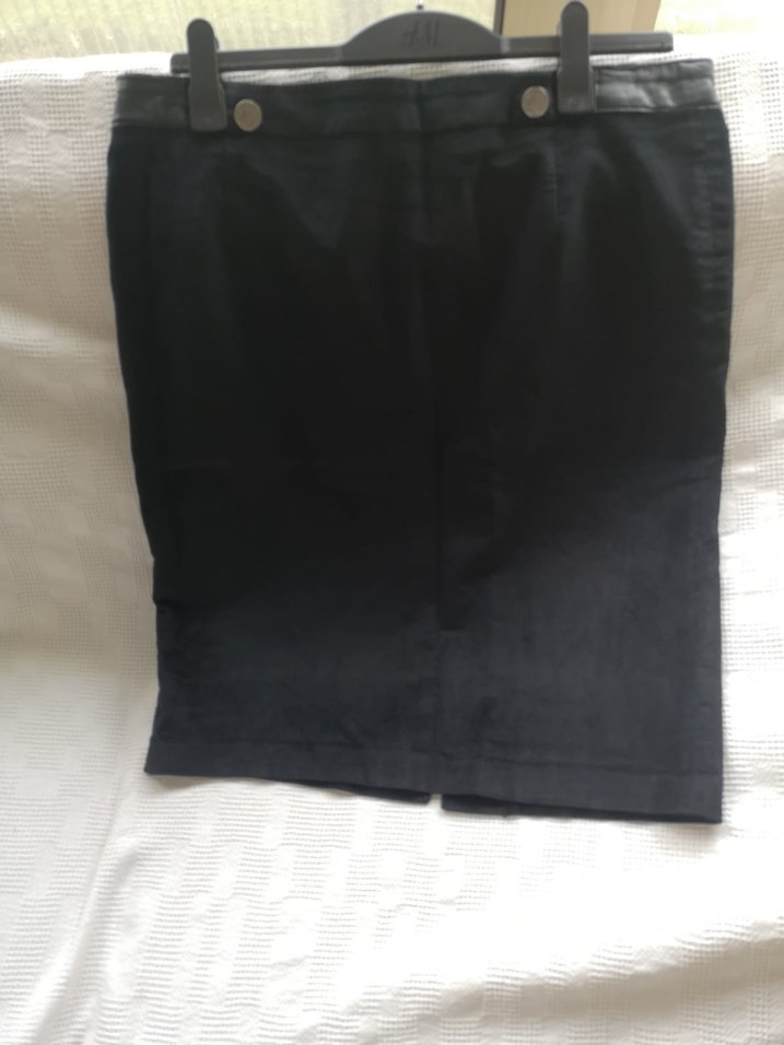 Siyah süet kumaştan, midi boyda, vücuda oturan kalem etek. Ofis için şık ve rahat bir tercih.