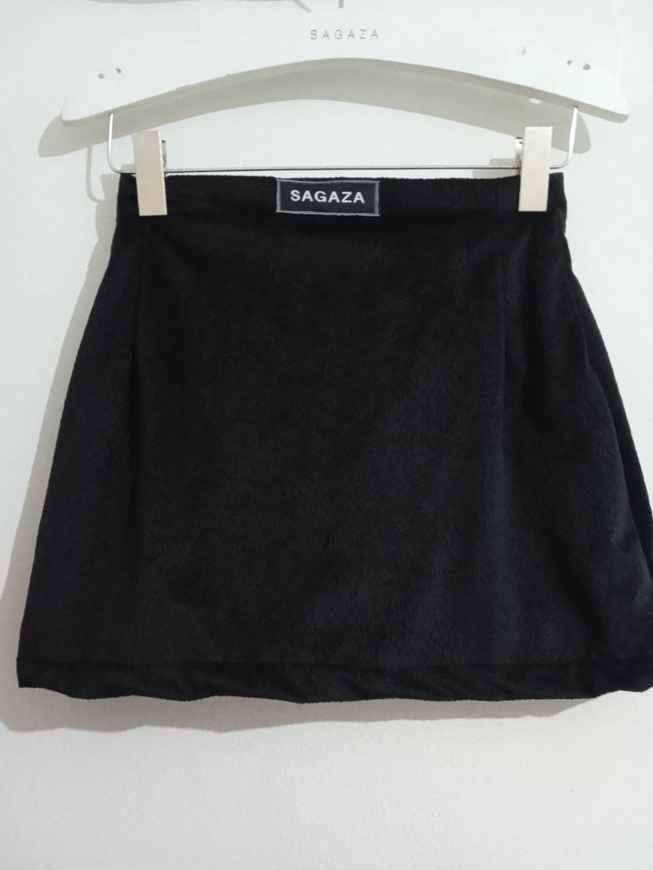 SAGAZA markalı, siyah süet kumaştan yapılmış, kısa ve düz kesim, günlük sokak stiline uygun mini etek.