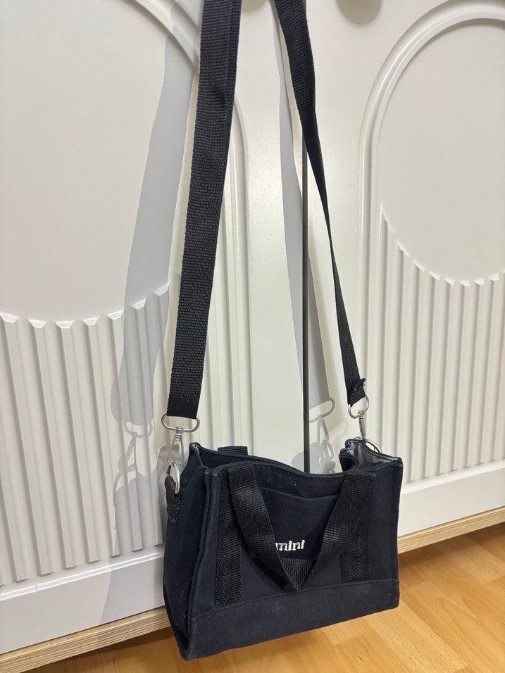 Siyah süet malzemeden yapılmış, kemerli detaylı ve ayarlanabilir askılı minimalist kadın çantasıdır. Günlük kullanıma uygundur, desensiz ve normcore tarzındadır. İçinde hafif leke var
