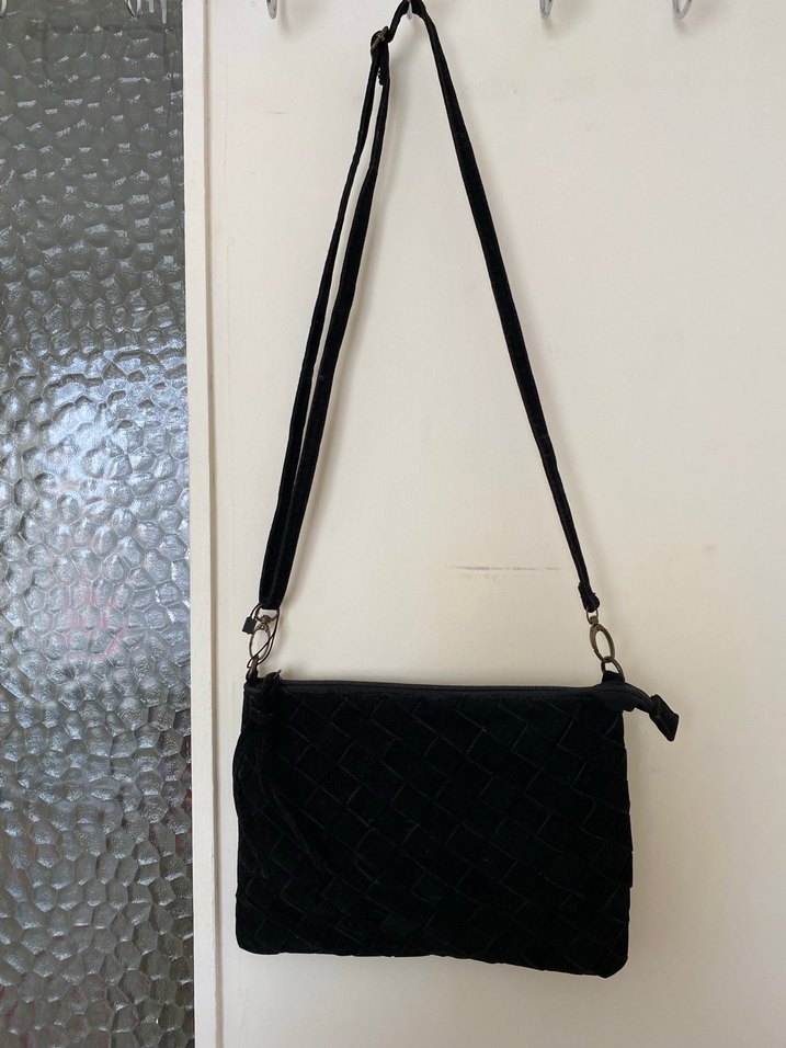 Siyah Süet Nakışlı Ayarlanabilir Askılı Çanta