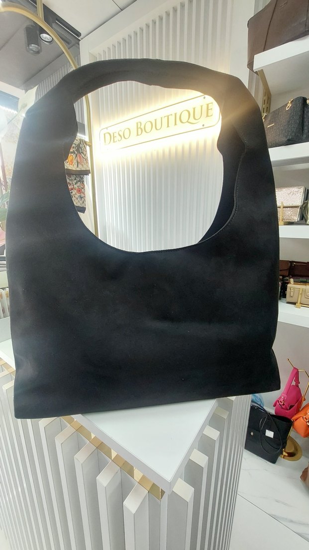 Siyah süet malzemeden yapılmış, desen içermeyen bu kadın çanta, özel sap tasarımıyla günlük kullanıma uygundur. Goth ve avant-garde tarzıyla uyumlu, zahmetsiz şıklık sunar.