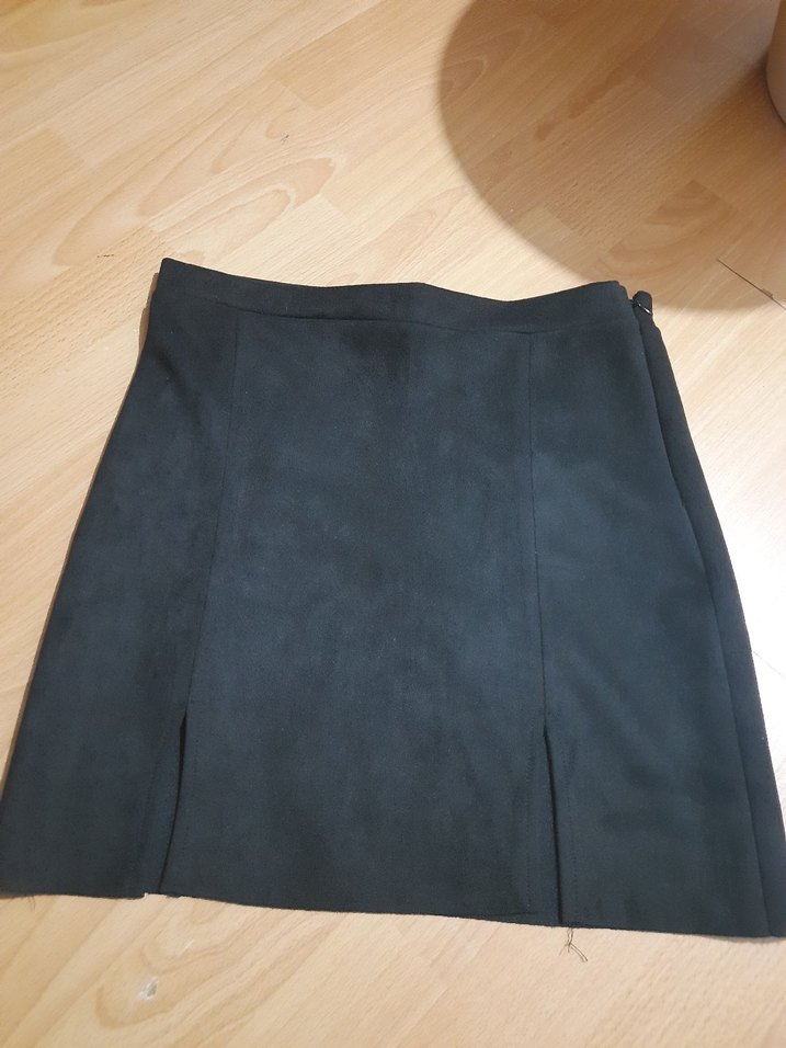 Siyah Süet Pilili Midi Kadın Etek