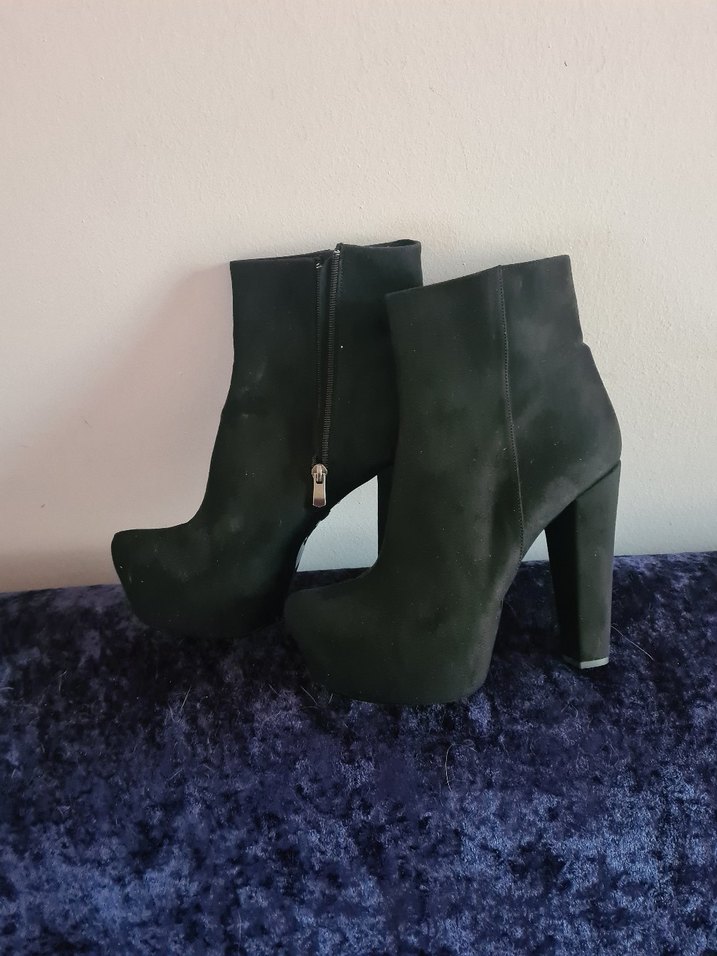 Siyah süet platform topuklu, fermuarlı botlar. Cesur gotik tarzıyla romantik akşamlar için ideal, koyu ve desensiz tasarım.topuk boyu 13 cm .platformu olduğu için 38-39 ayak numarası için uygundur
