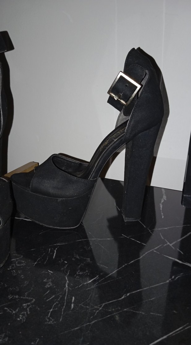 Siyah Süet Platform Topuklu Kadın Ayakkabı