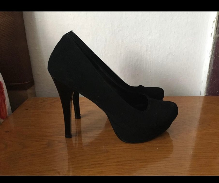 Siyah Süet Platform Topuklu Kadın Ayakkabı