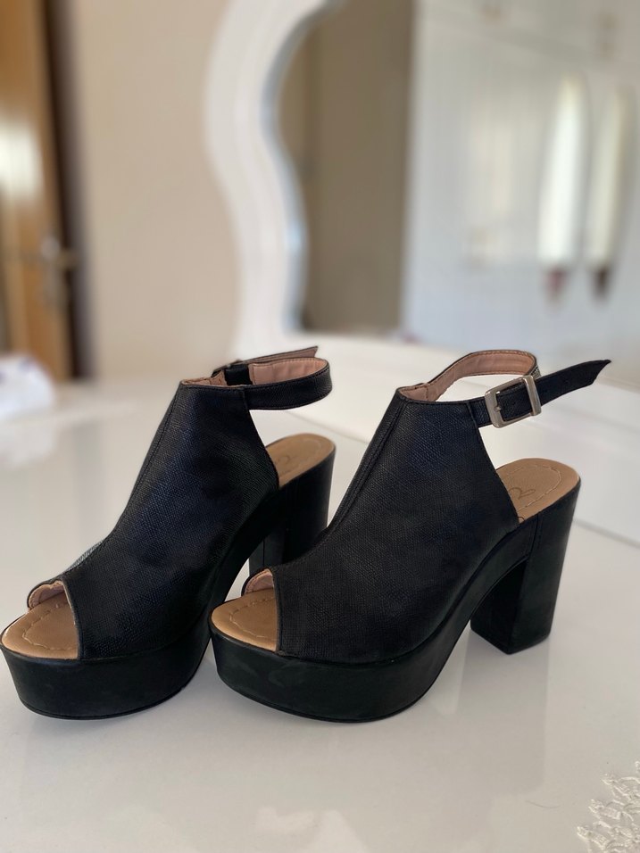 Siyah Süet Platform Topuklu Sandalet