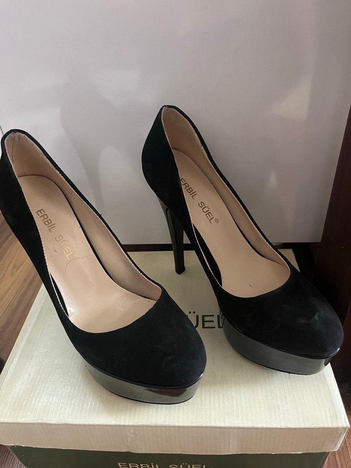 Siyah Süet Platform Topuklu Stiletto