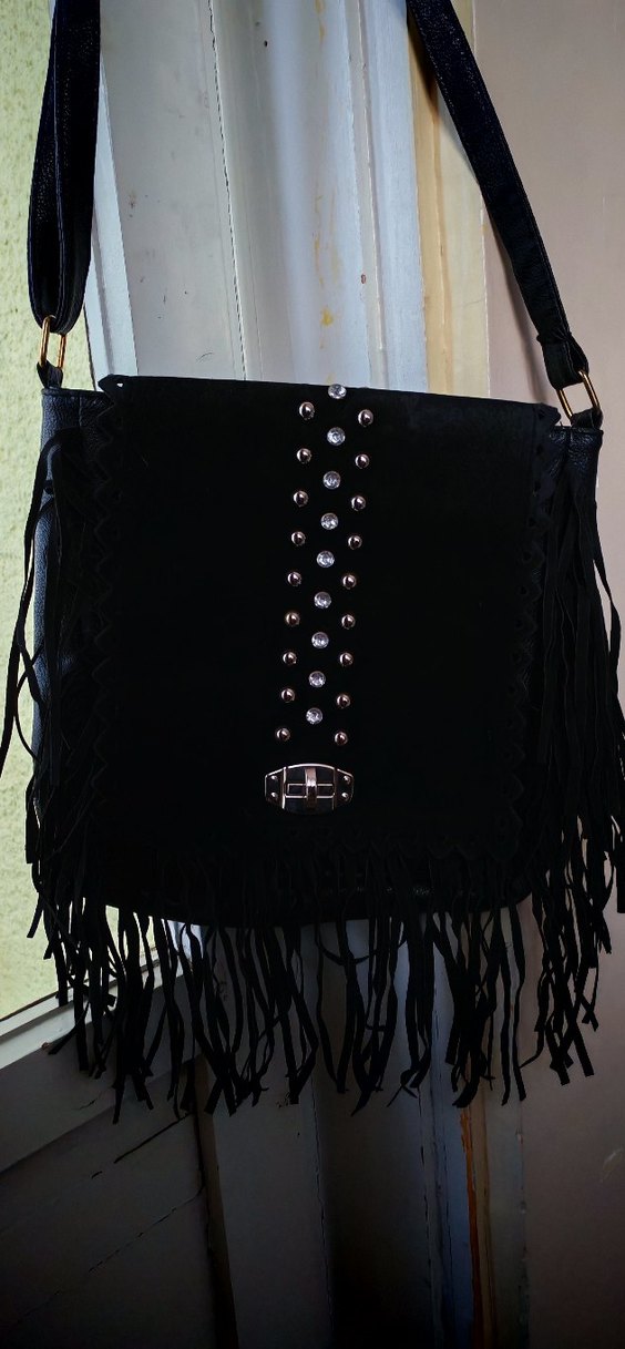 Siyah Süet Püsküllü Kadın Çanta