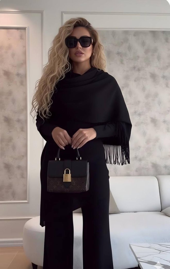 Bedenler: S.M.L.XL Kadınlar için siyah süet kumaştan yapılmış, püsküllü kenar detaylarıyla trendy gündelik sokak stili için ideal bir panço.