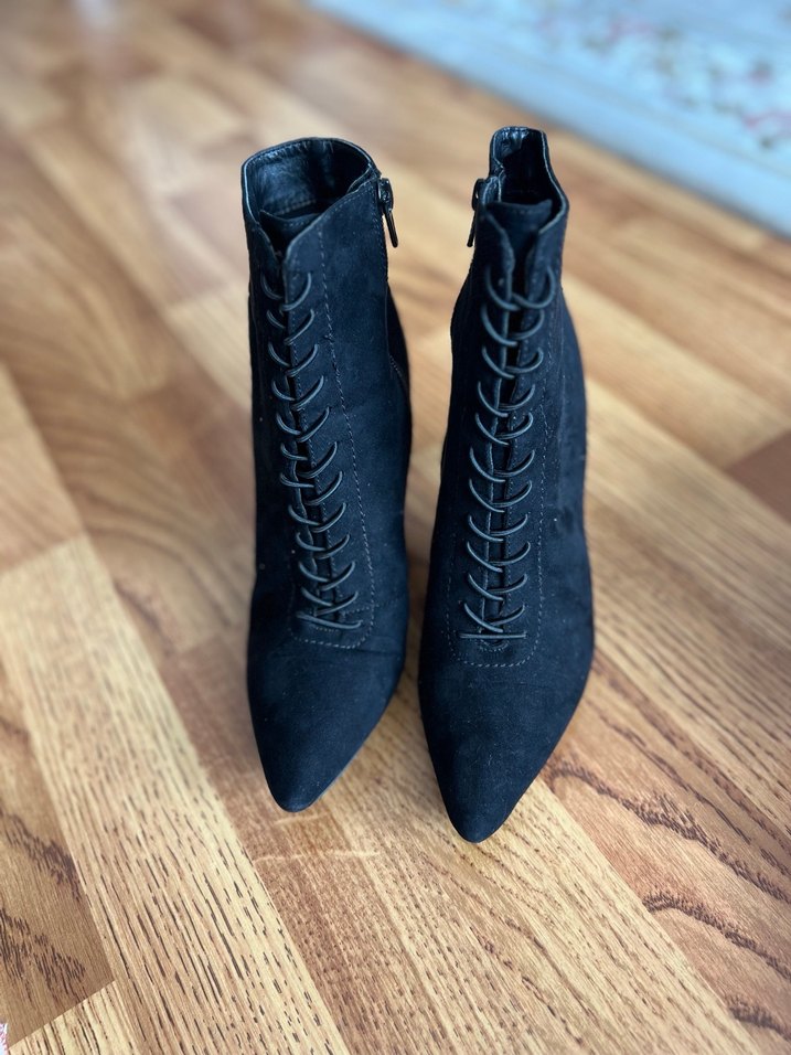 Siyah Süet Sivri Burunlu Topuklu Bot