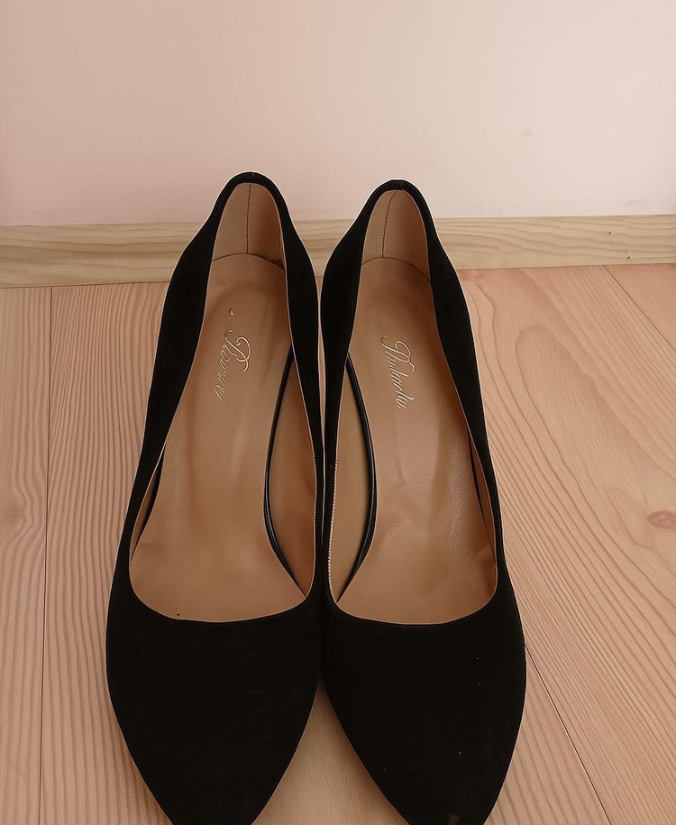 Siyah süet stiletto topuklu, klasik normcore tasarımlı, ofis için uygun kadın ayakkabısı. Zarif ve kolay şıklık sunar.