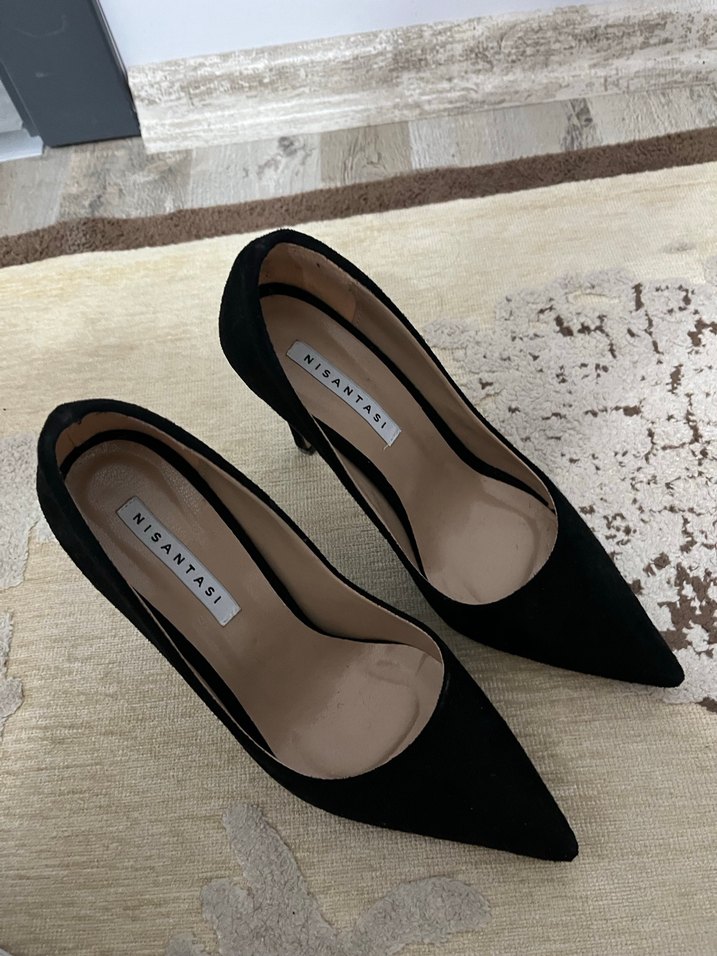 Siyah Süet Stiletto Topuklu Kadın Ayakkabı