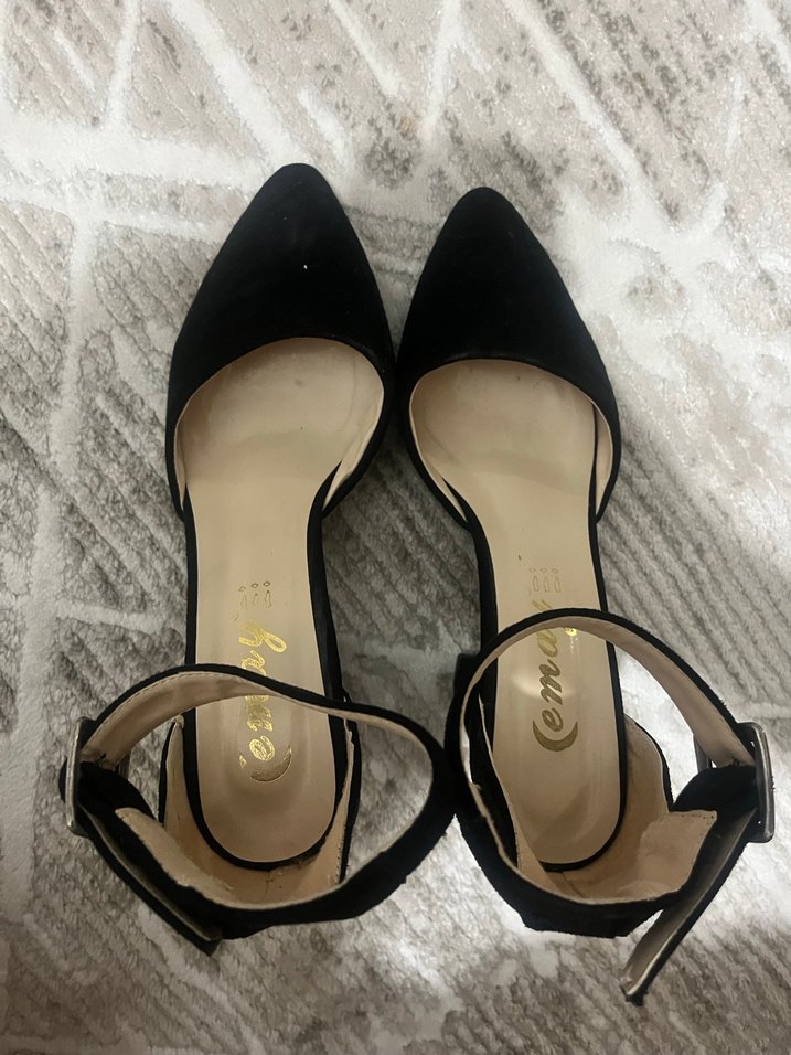 Siyah süet stiletto topuklu ayakkabılar, tokalı bilek kayışı