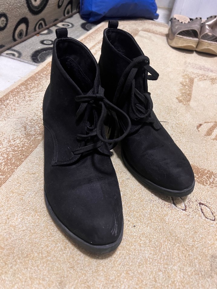 Siyah süet malzemeden yapılmış, stiletto topuklu kadın botları. Minimalist ve goth tarzıyla günlük kullanıma uygun, şık ve sade tasarım.