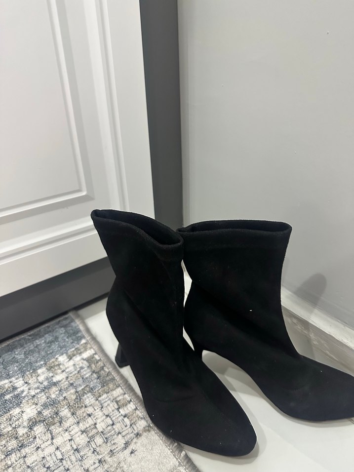 Siyah Süet Stiletto Topuklu Kadın Bot