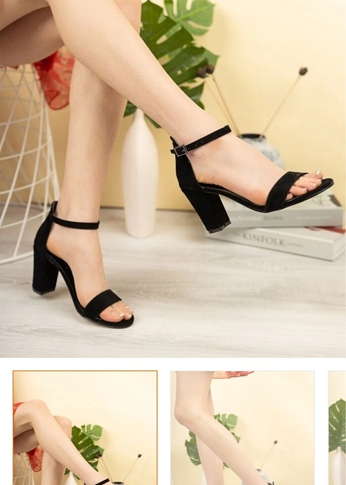 Siyah süet tek bant platform kalın topuklu ayakkabı