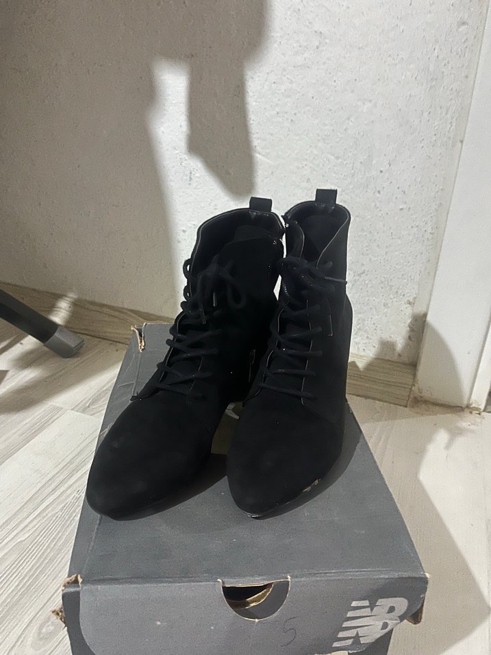Siyah Süet Tokalı Blok Topuklu Bot