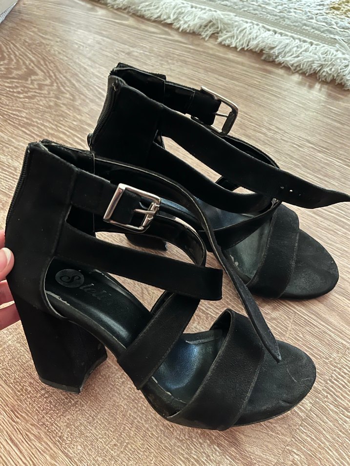 Siyah Süet Tokalı Blok Topuklu Kadın Ayakkabı