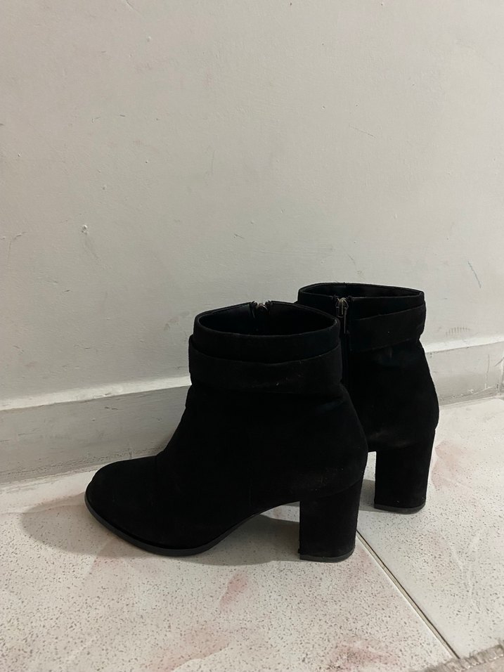 Siyah Süet Tokalı Blok Topuklu Kadın Bot