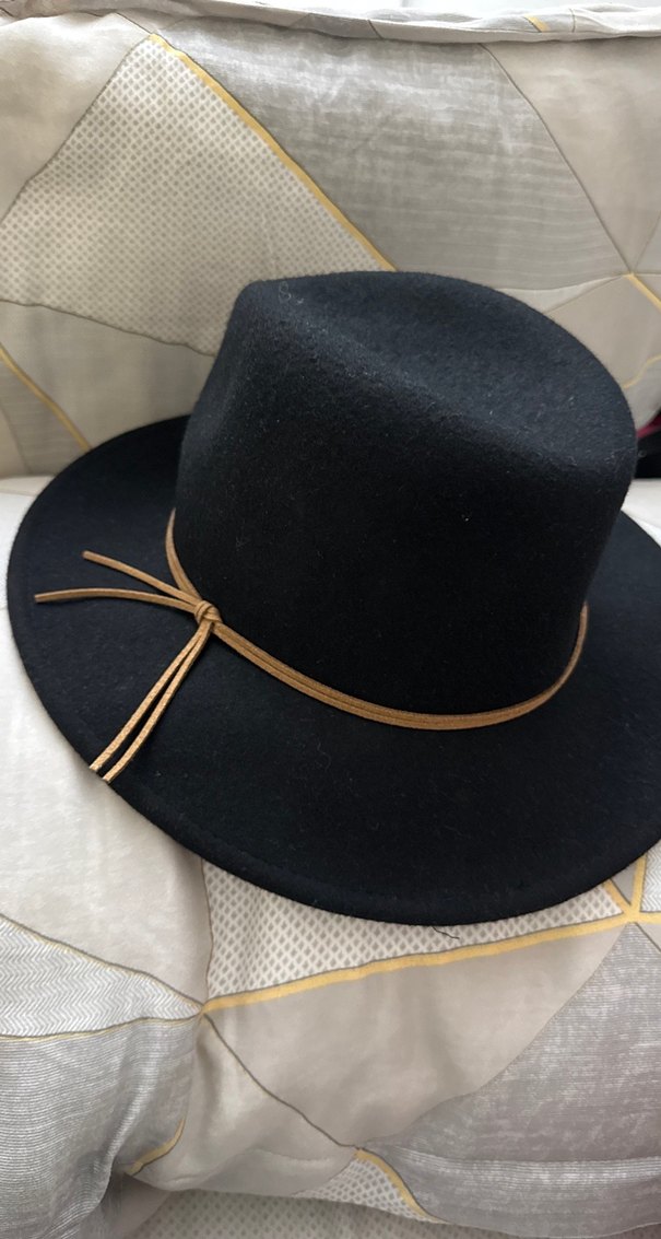 Tokalı bant detaylı, geniş kenarlı siyah süet kadın şapka. Bohem ve retro Paris tarzını yansıtan şık bir aksesuar.