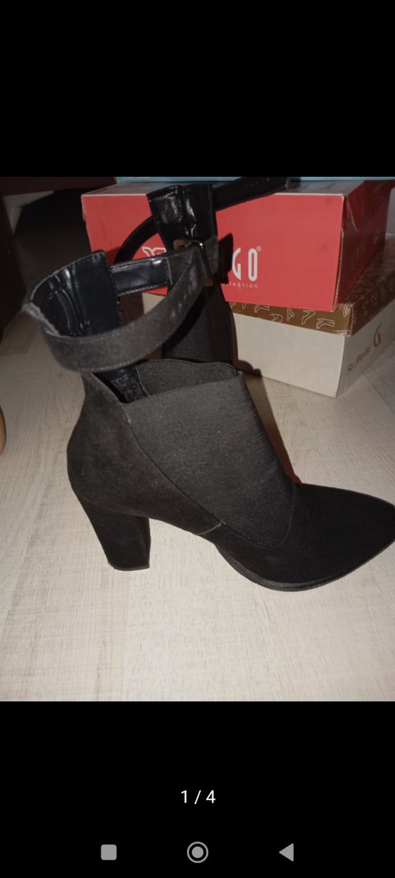 Siyah süet malzemeden yapılmış, tokalı bantlı blok topuklu kadın botu. Cesur gotik tarzıyla günlük kullanıma uygun. 3saat giydim
