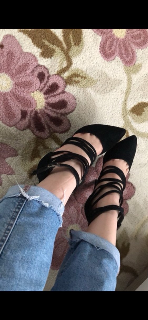 Siyah Süet Tokalı İnce Topuklu Kadın Ayakkabı