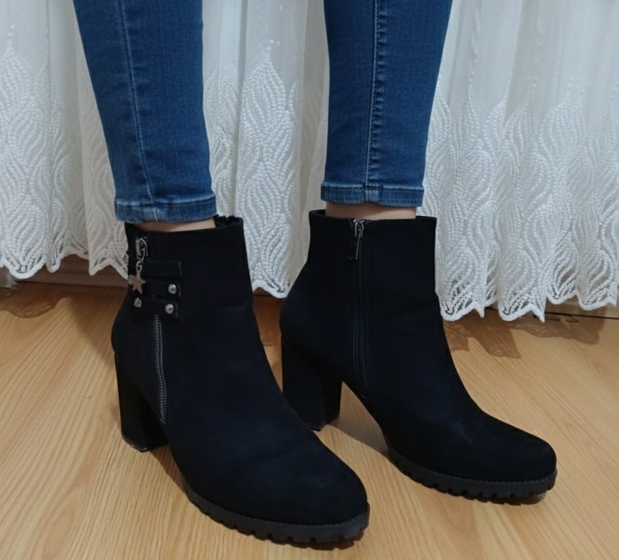 Siyah süet kadın bot, blok topuklu ve tokalı detaylara sahip. Yan fermuarı ile rahat kullanım sunar. Günlük kullanıma uygundur. sipariş ederken elektronik aletse çalışır durumda olduğunu , giyim ise şeffaf gösterilen bir şekilde videosunu atabilirim. 39-40 uyumludur