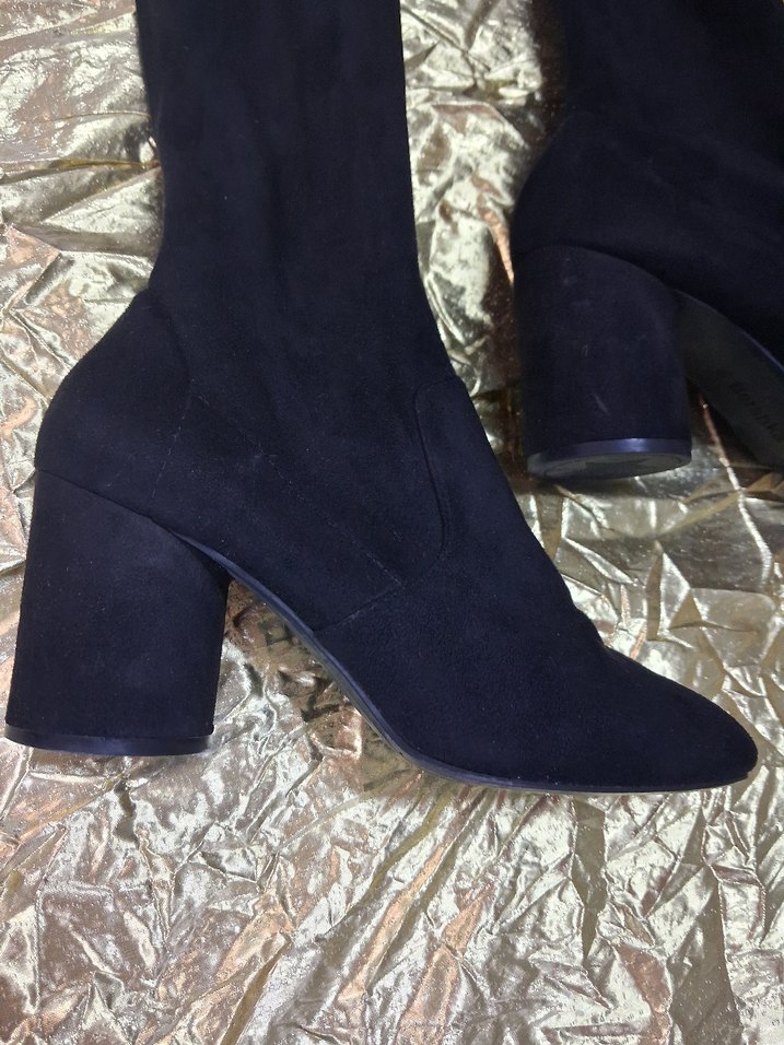 Siyah süet malzemeden, tokalı ve kalın topuklu kadın botu. Gotik tarzda, romantik akşamlar için ideal. kalıbı 38,5 ve 39 arasında Taraklı ayaklara olmayacak bir kalıba sahiptir