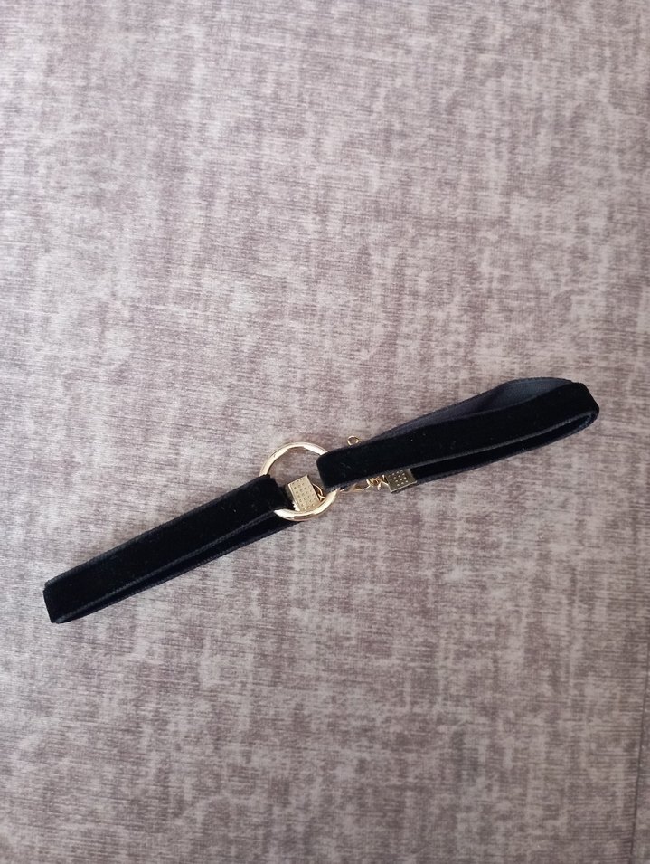 Altın tokalı siyah süet boyun aksesuarı, klasik zarafet ve gotik tarzı bir araya getirir. Yumuşak dokulu ve şık tasarım.