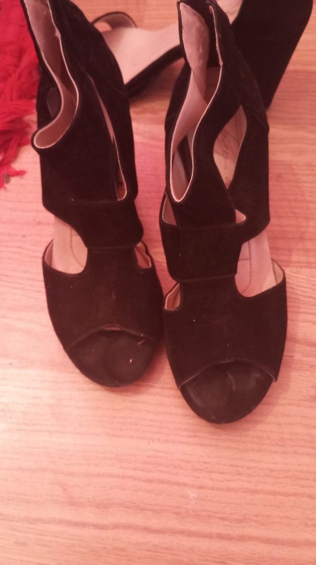 Siyah süet, tokalı kadın dolgu topuk ayakkabılar, romantik akşamlar için uygun. Minimalist ve gotik tarzda, modaya uygun.