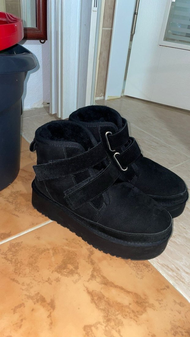 Siyah süet malzemeden yapılmış, tokalı ve dolgu topuklu kadın botu. Rahat ve desensiz tasarımı günlük kullanım için uygundur.