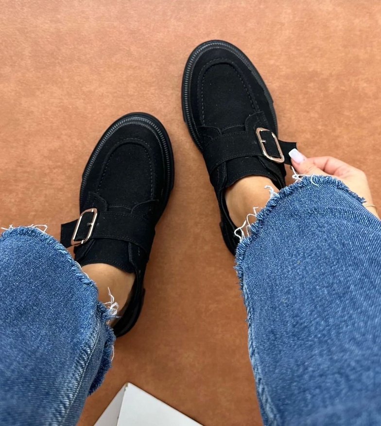 Marka temsili Mupa Shoes.Kaliteli bir butik üründür Siyah süet malzemeden, tokalı ve blok topuklu kadın loafer. Günlük rahat sokak stili için uygun ve konforlu.çok şık ama bana küçük geldi 1 kere giyildi