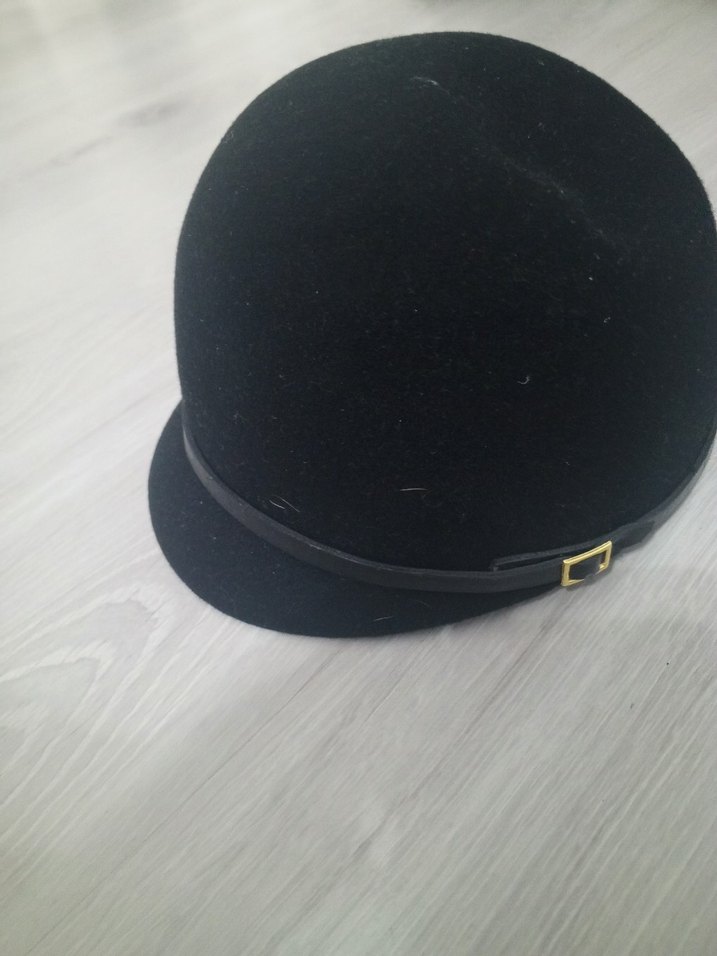 Siyah süet malzemeden yapılmış, tokalı klasik ve karşı kültür tarzında kadın şapkasıdır. Koyu renk ve yumuşak dokusu nostaljik bir hava katar.