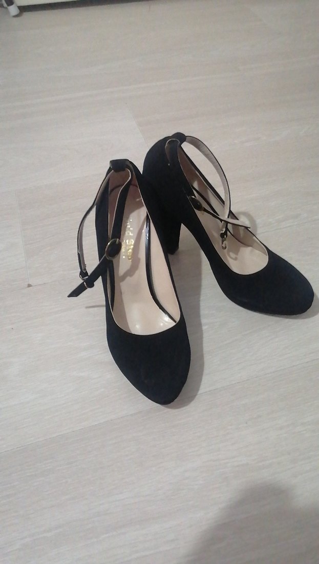 Siyah Süet Tokalı Kadın Topuklu Ayakkabı