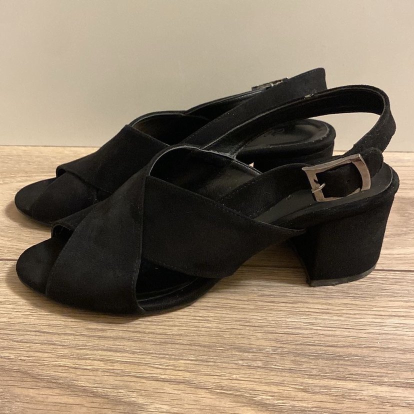 Siyah Süet Tokalı Kadın Topuklu Ayakkabı