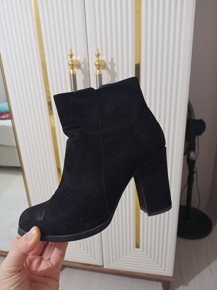 Siyah Süet Tokalı Kadın Topuklu Bot