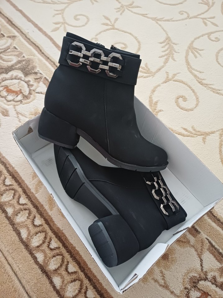 Ürün hiç kullanılmadı.Ihtiyac fazlası olduğu için satıyorum. Siyah süet kadın botları, kalın topuklu ve tokalı detaylara sahip, günlük rahat kullanım için uygun.Ciddi alıcıya pazarlık payı vardır.