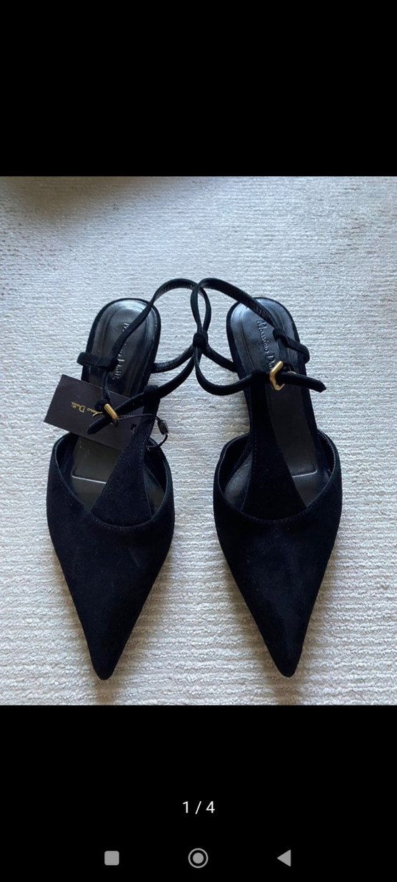Siyah süet, tokalı kayışlara sahip sivri burunlu kısa topuklu ayakkabılar, klasik zarafeti gotik Paris tarzıyla birleştirir, ofis kullanımı için uygun.